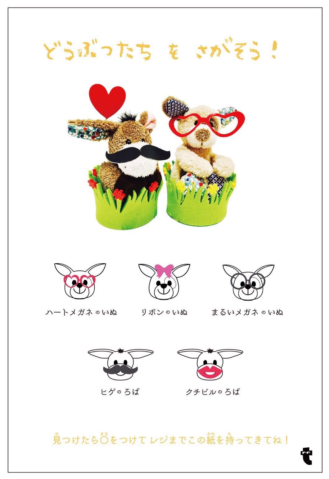 店内に、仮装をしたどうぶつ(ぬいぐるみ)がいるので、探して〇を付けていただき、