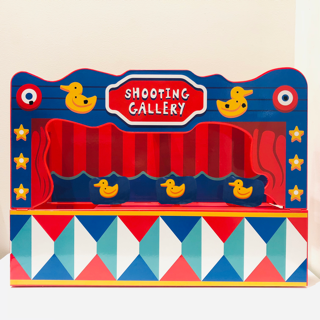 電源を入れて動き出すかわいいアヒルの的をピストルで狙って倒します!