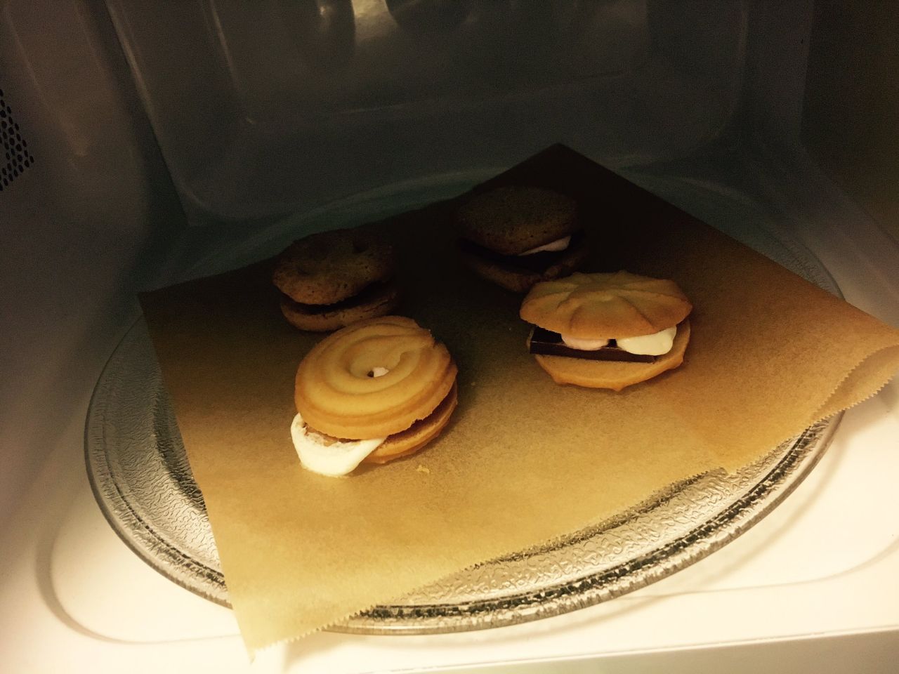 ※マシュマロは膨張したさいに、のせたクッキーがコロっと落ちてしまうことがあるので
