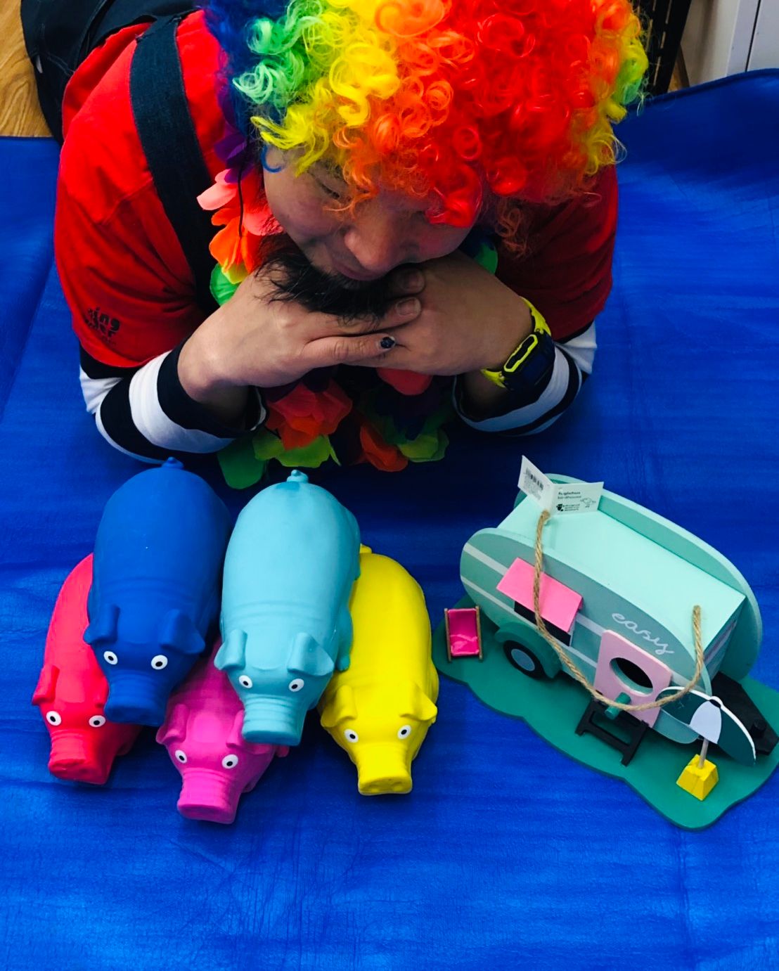 カラフルな私とカラフルなブタ・・・。どこか似てる・・・。