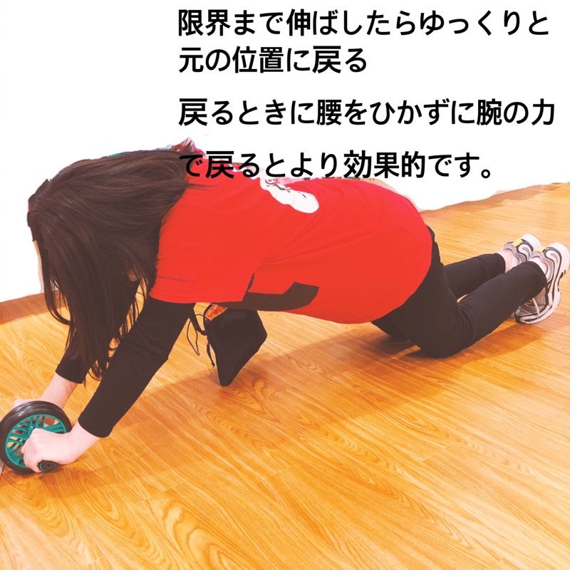 その他にも!膝を付けた状態で肩の下の部分に腹筋ローラーをもって来ます