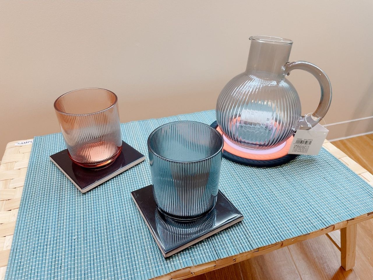 カラーが落ち着いて、品のあるグラスやコースターで
