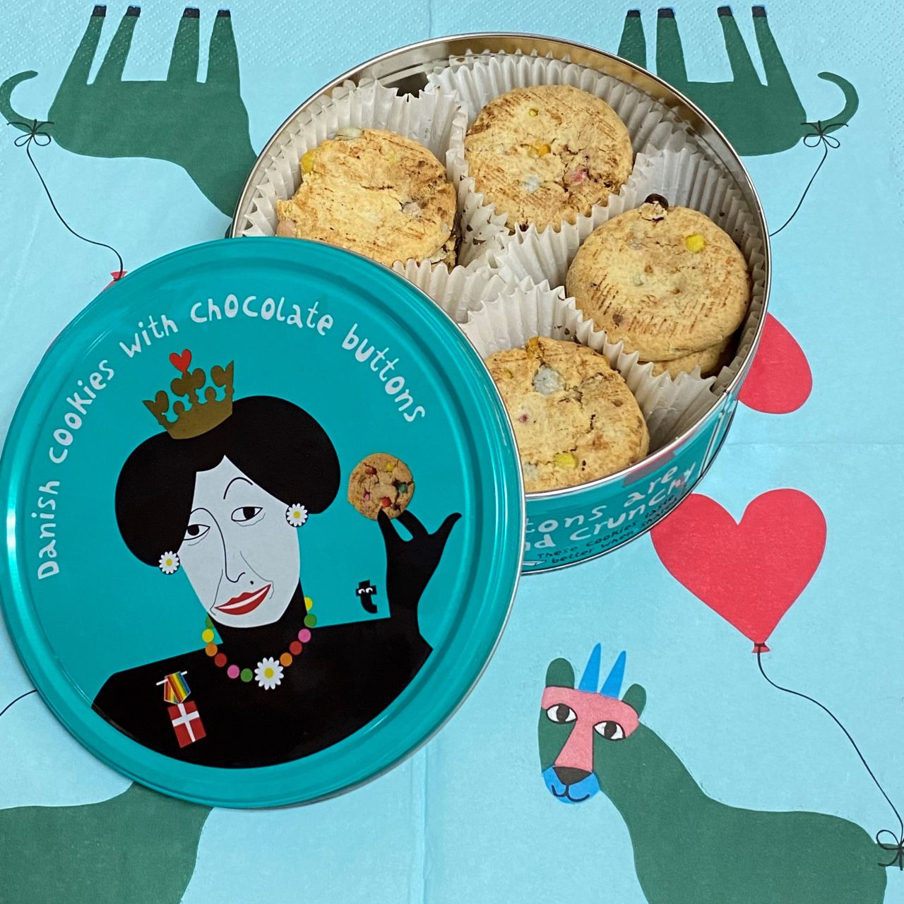ボタンチョコレートクッキーにチョコレートペンでデコレーションした