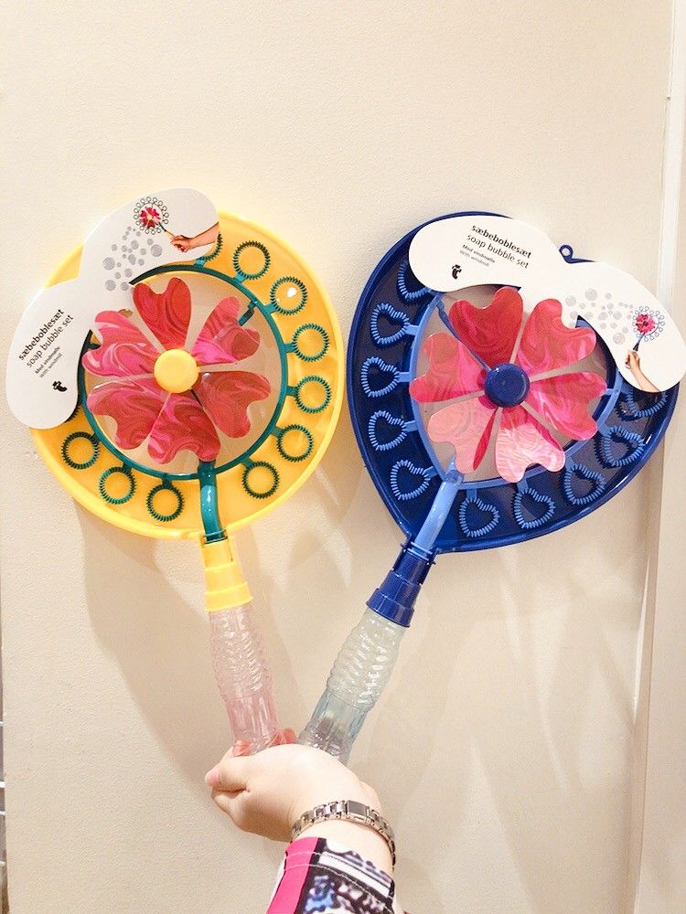 風が吹くと真ん中にある風車が回って、シャボン玉が一度にたくさんできます❁