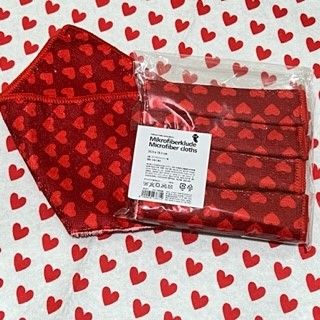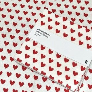 真っ赤なハートが一面に散りばめられたキッチンクロスです♥