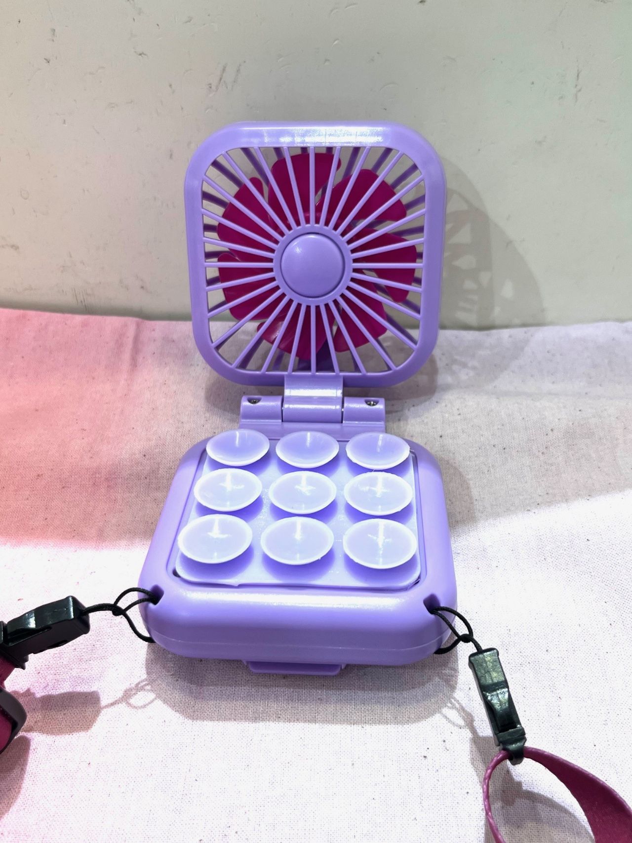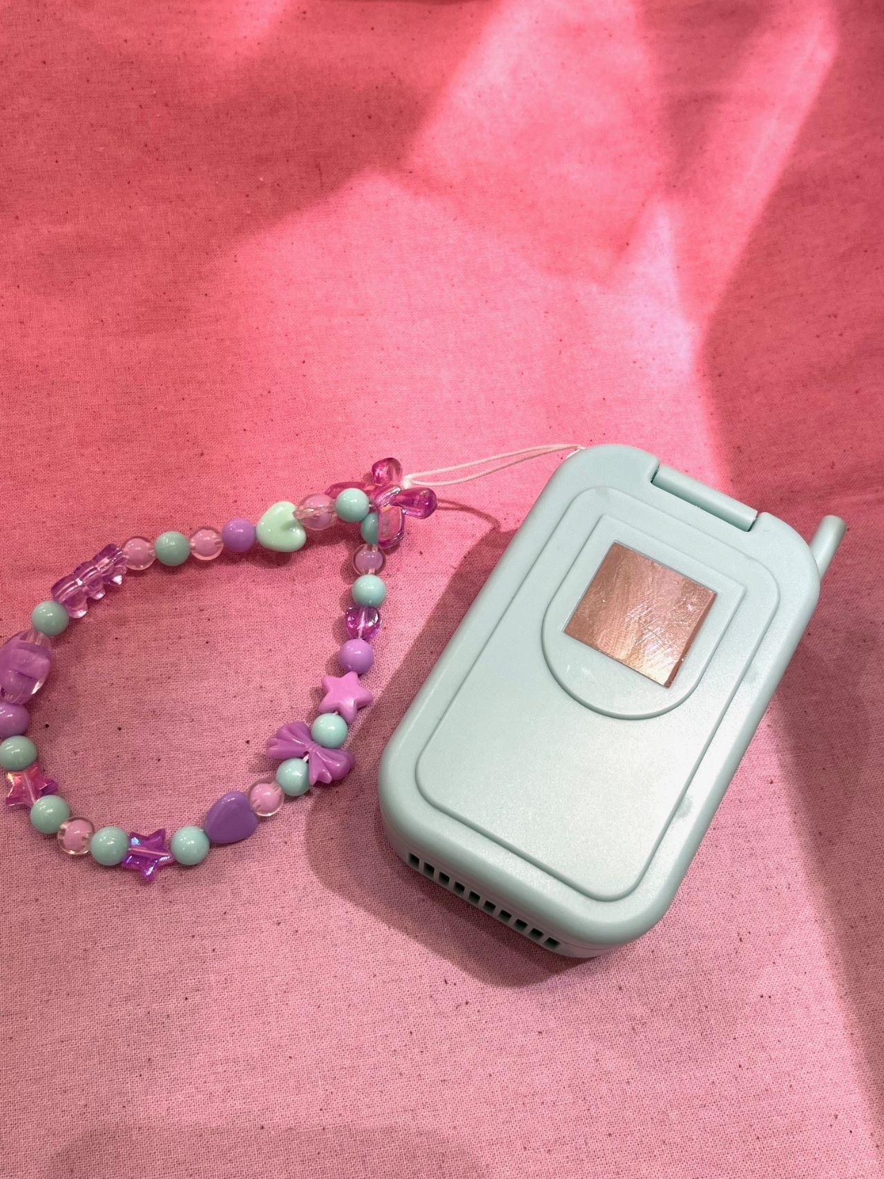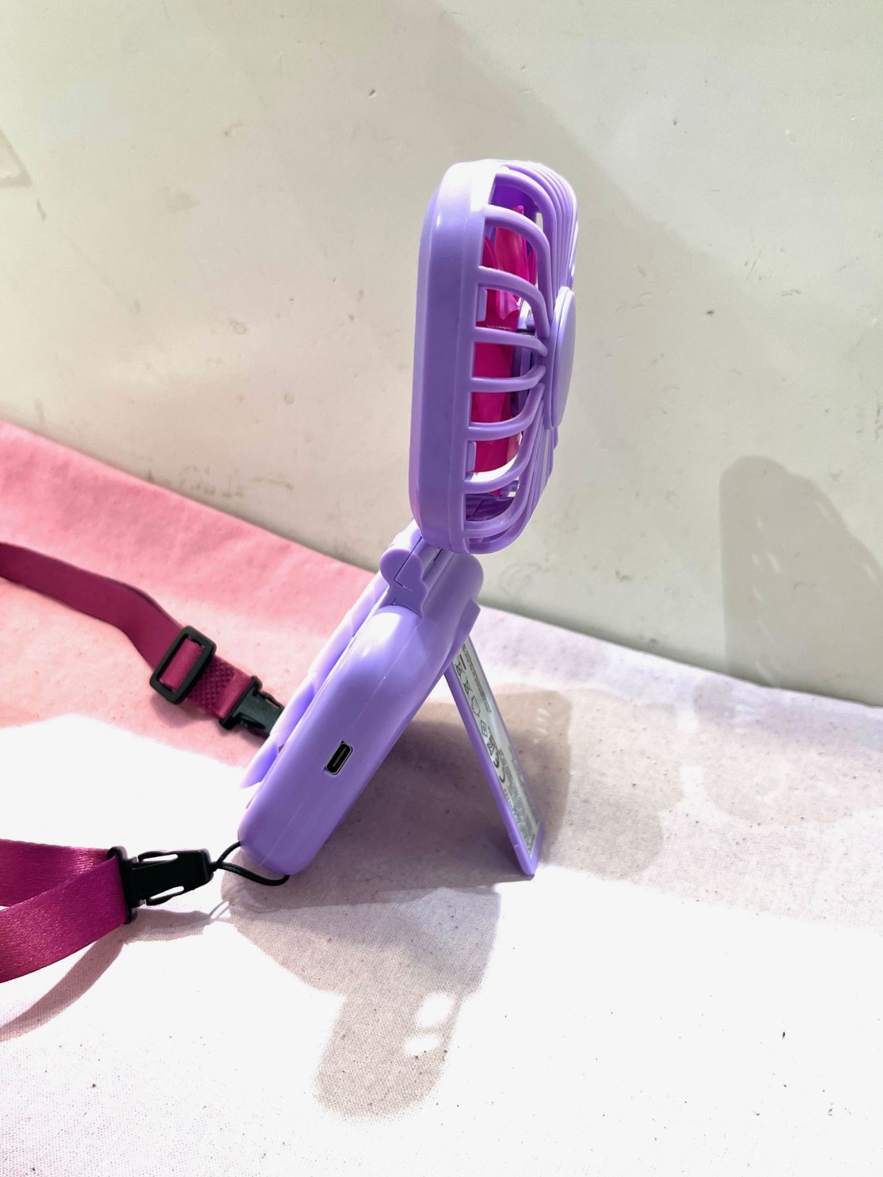 風量は3段階調節、可愛いビーズのストラップ付、充電式でtype-Cです(ケーブル付)