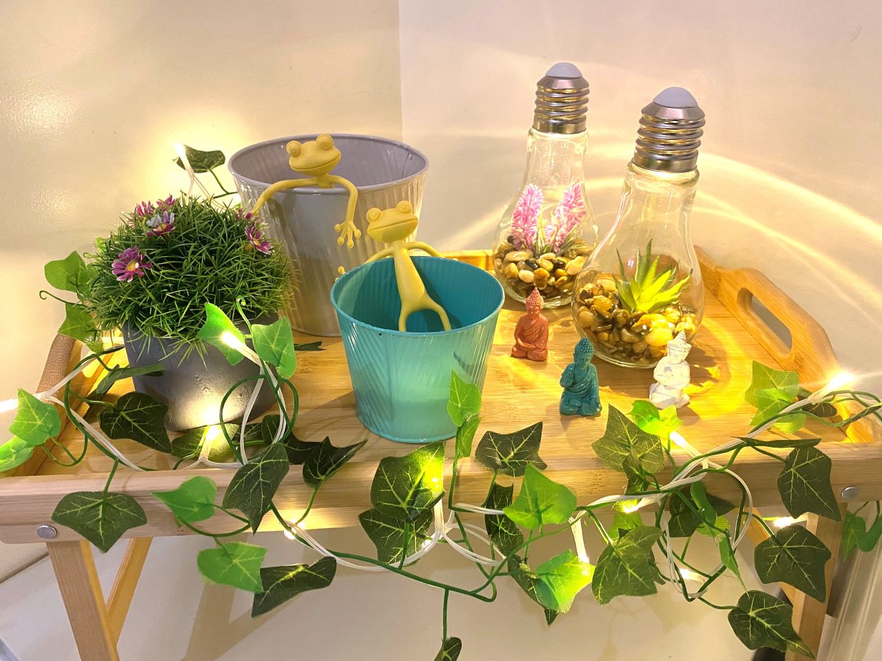 トレーテーブルに植物を置いてお部屋に緑コーナーを作ったり