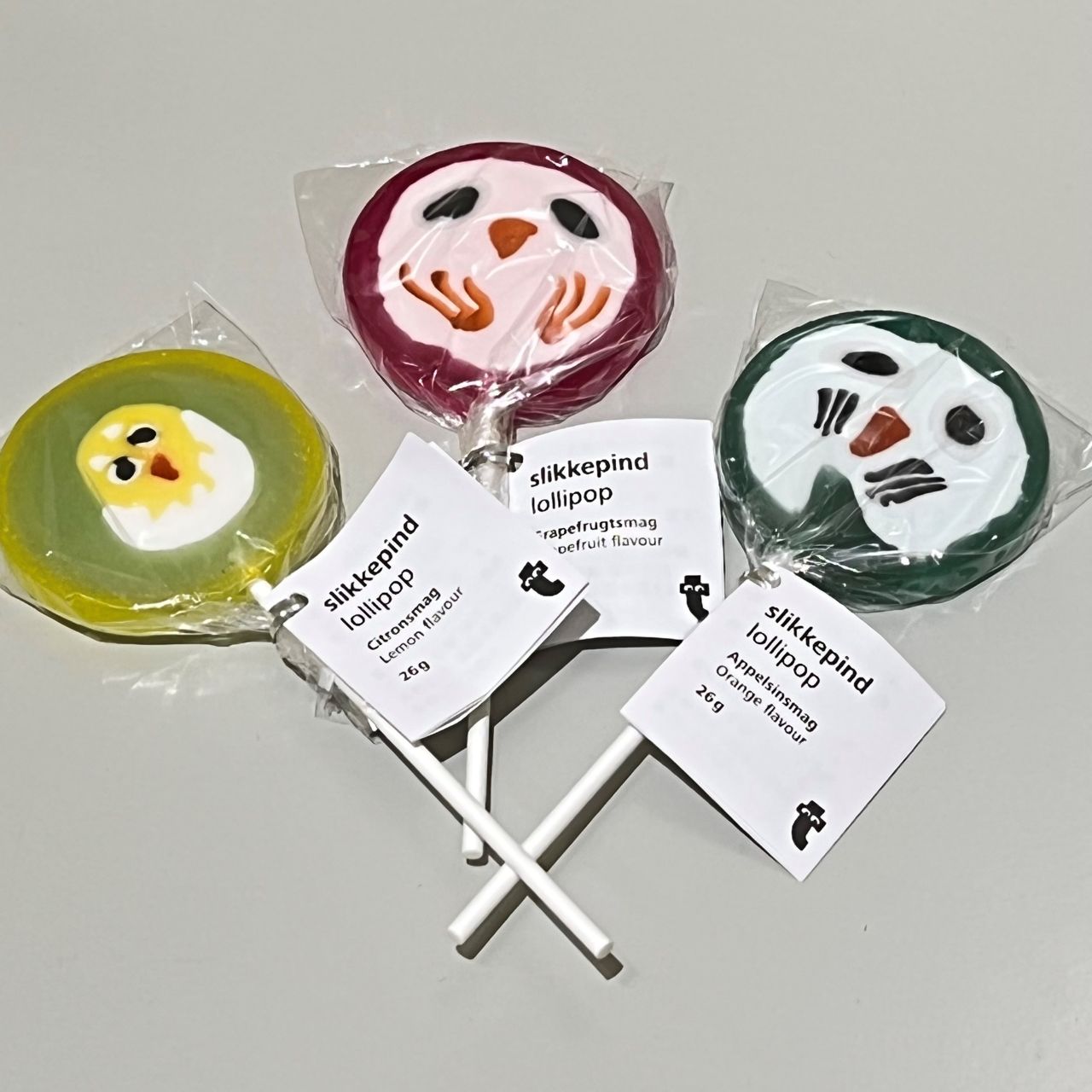 ユニークなイラストが描かれたこちらのキャンディーは右から順に