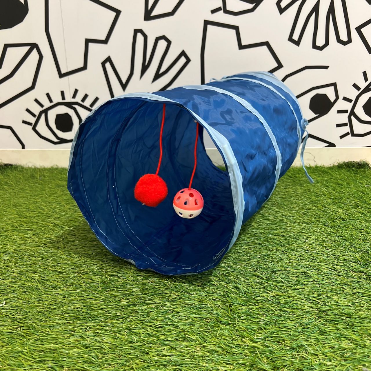 2色展開で販売されているこちらのキャットトンネルは、入り口におもちゃもついていて