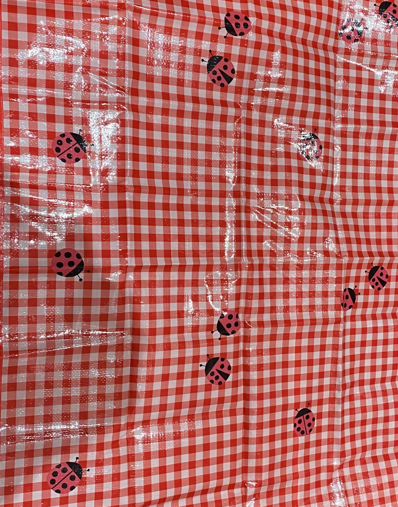 赤のチェック柄にてんとう虫がポイントで
