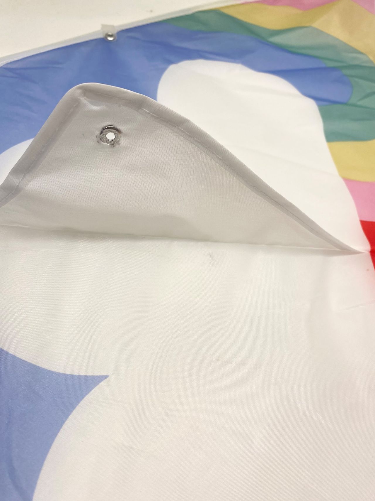 ③骨組みを通していない逆側を上にし、穴に付属されている紐を通します