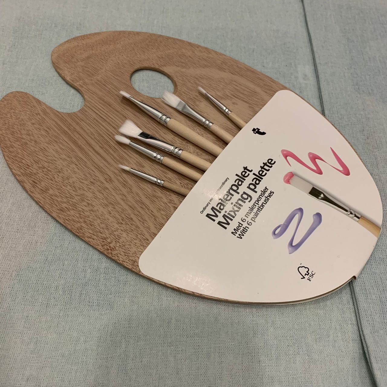 まるで絵描きさんのようなパレットに、太さの異なる筆が6本セットになっています!