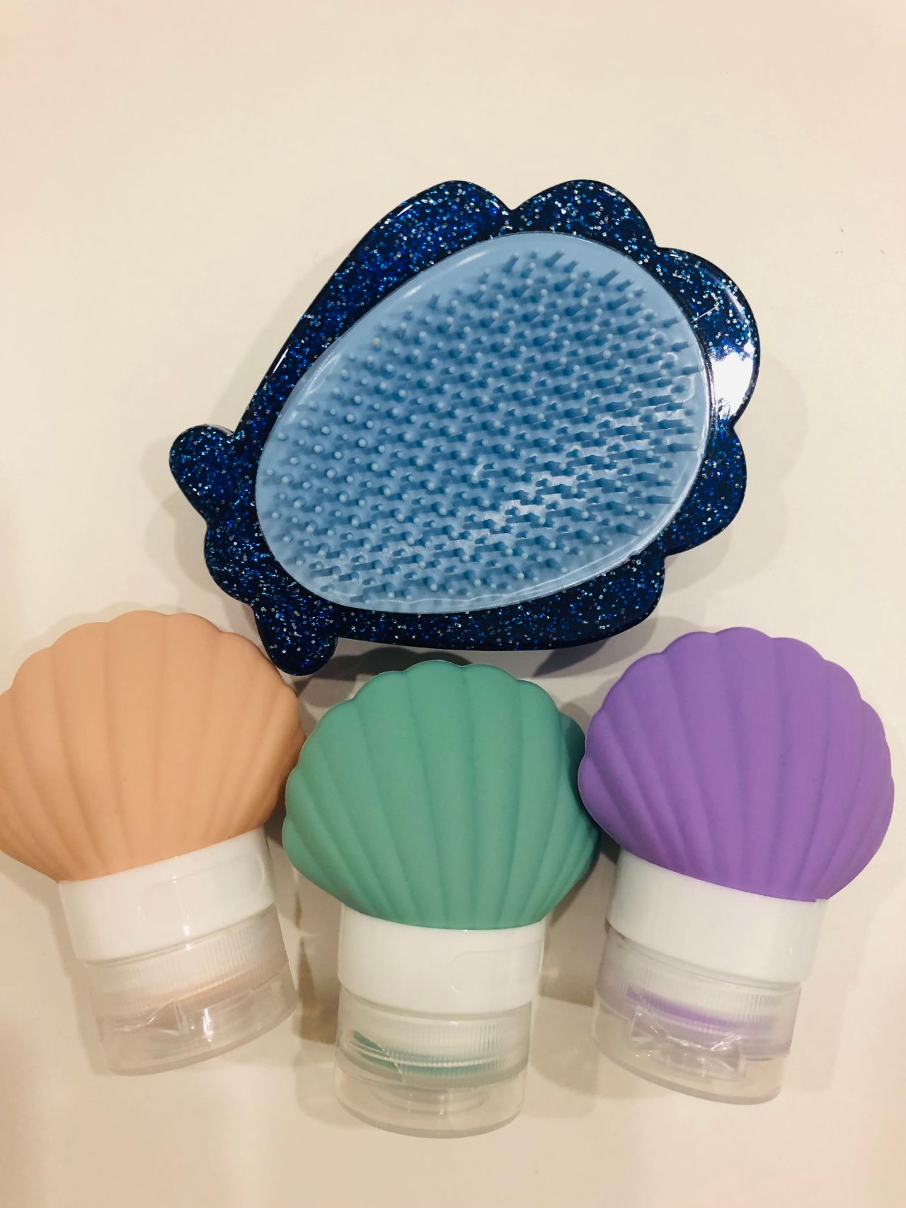 こんな可愛いボトルに入れ替えるなんてテンション上がります!荷造りも楽しくなっちゃう!お揃いのヘアブラシも待ってこ!