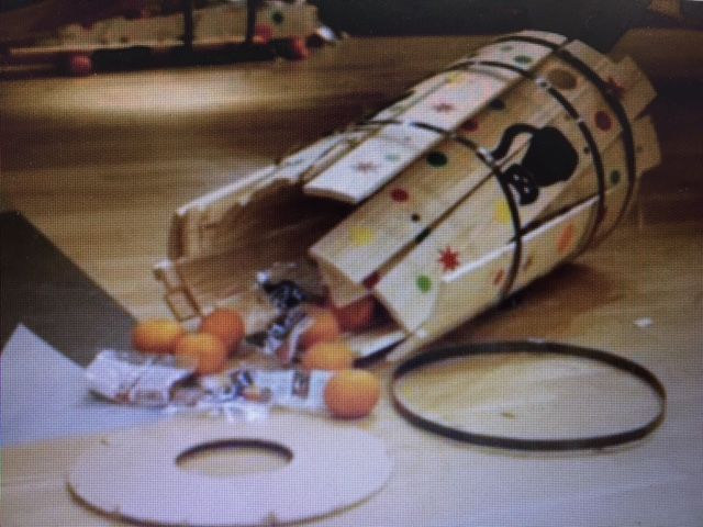 一番はやく木樽を叩き割った子供が