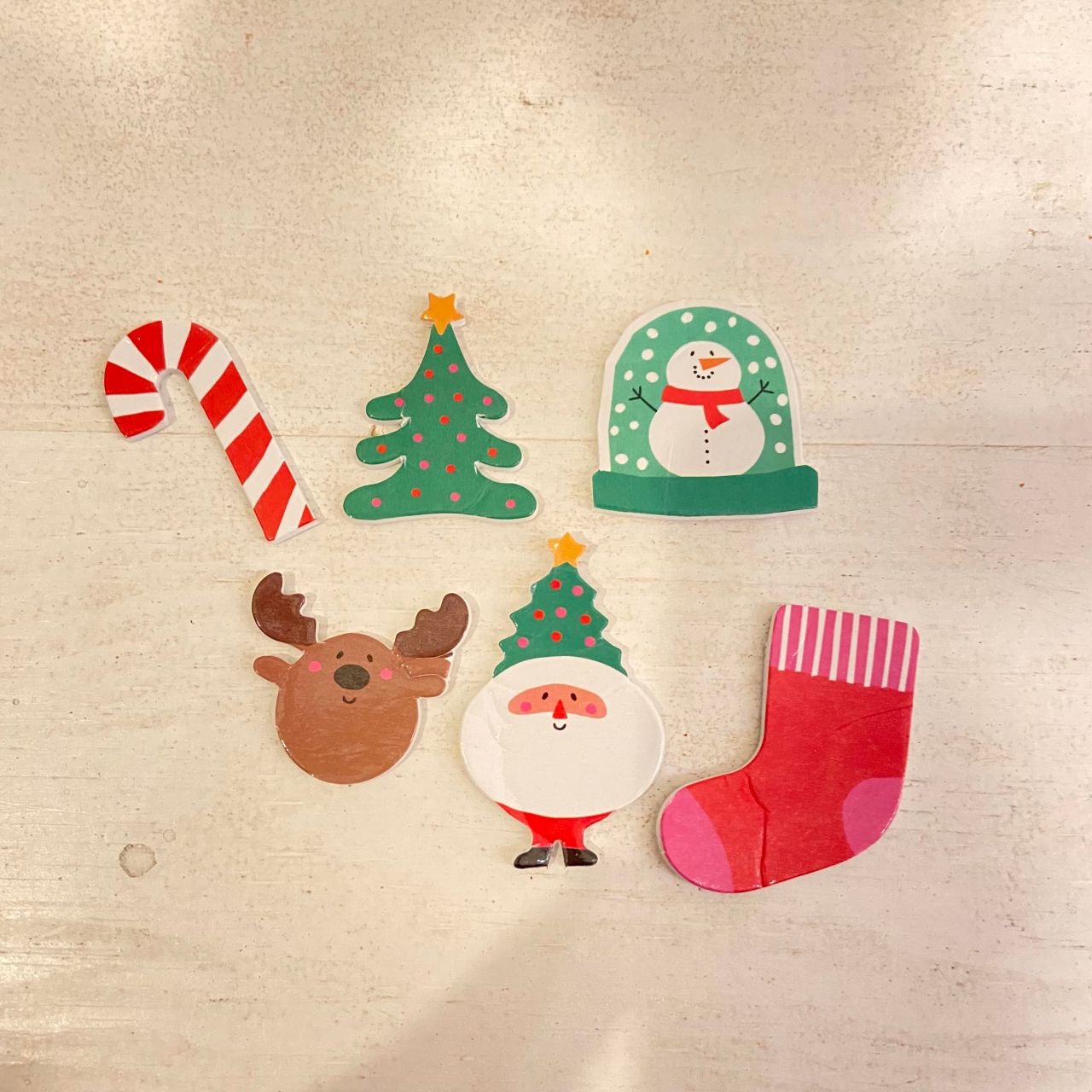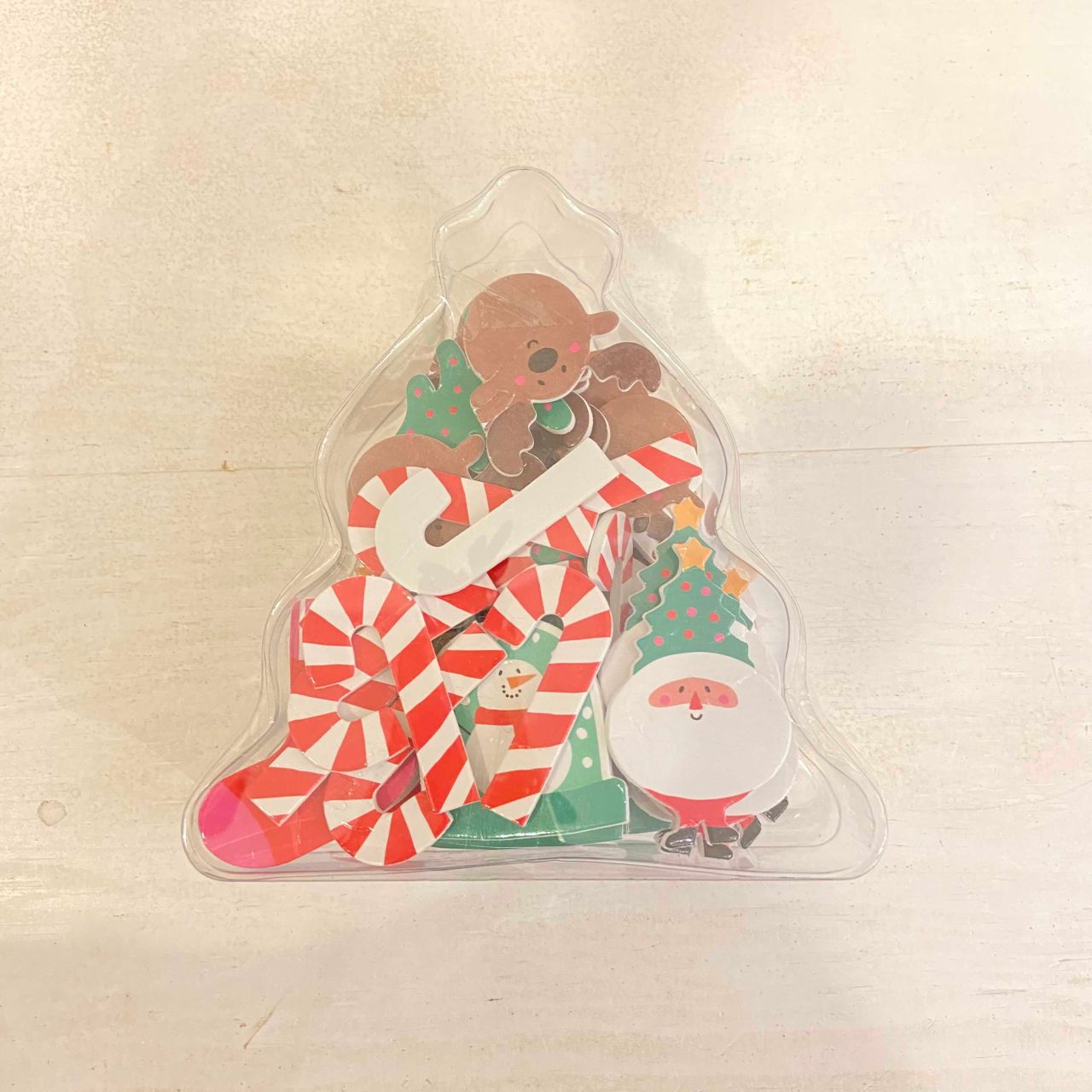 こちらの商品、クリスマスツリーの形をしたケースに6種類のステッカーが入っています♪