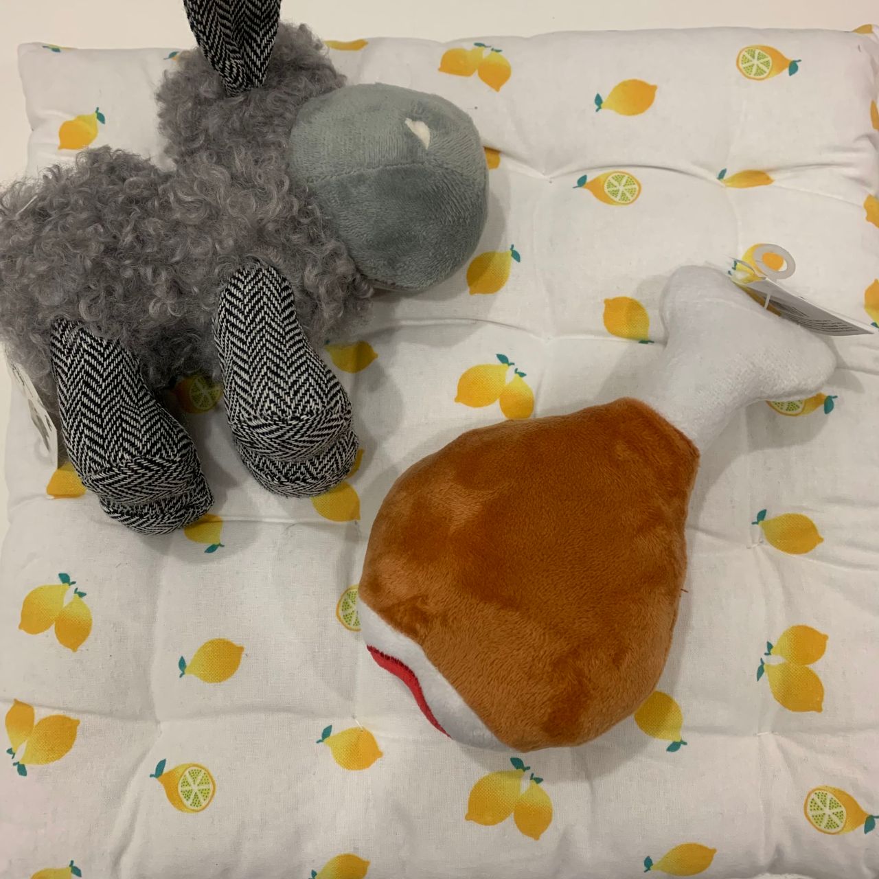 ひつじさんの方はわりと大きめで、耳や足を噛んで遊べそうです !