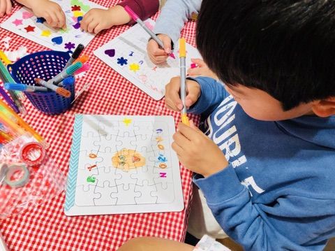 パズルに絵を描いたり、色を塗ったり、