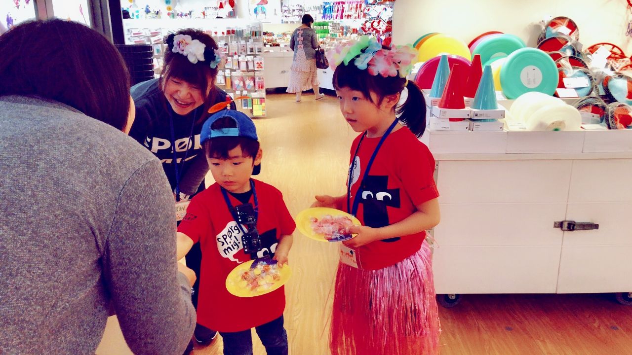 ごあいさつの後は、店内のお客様にキャンディを配ります!