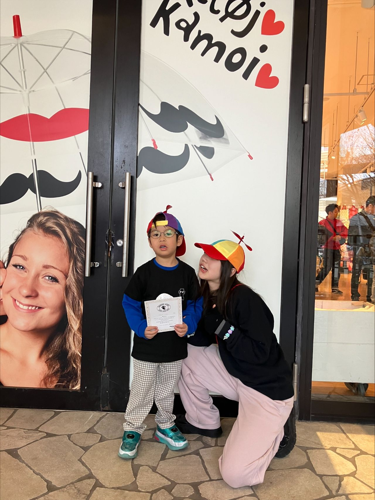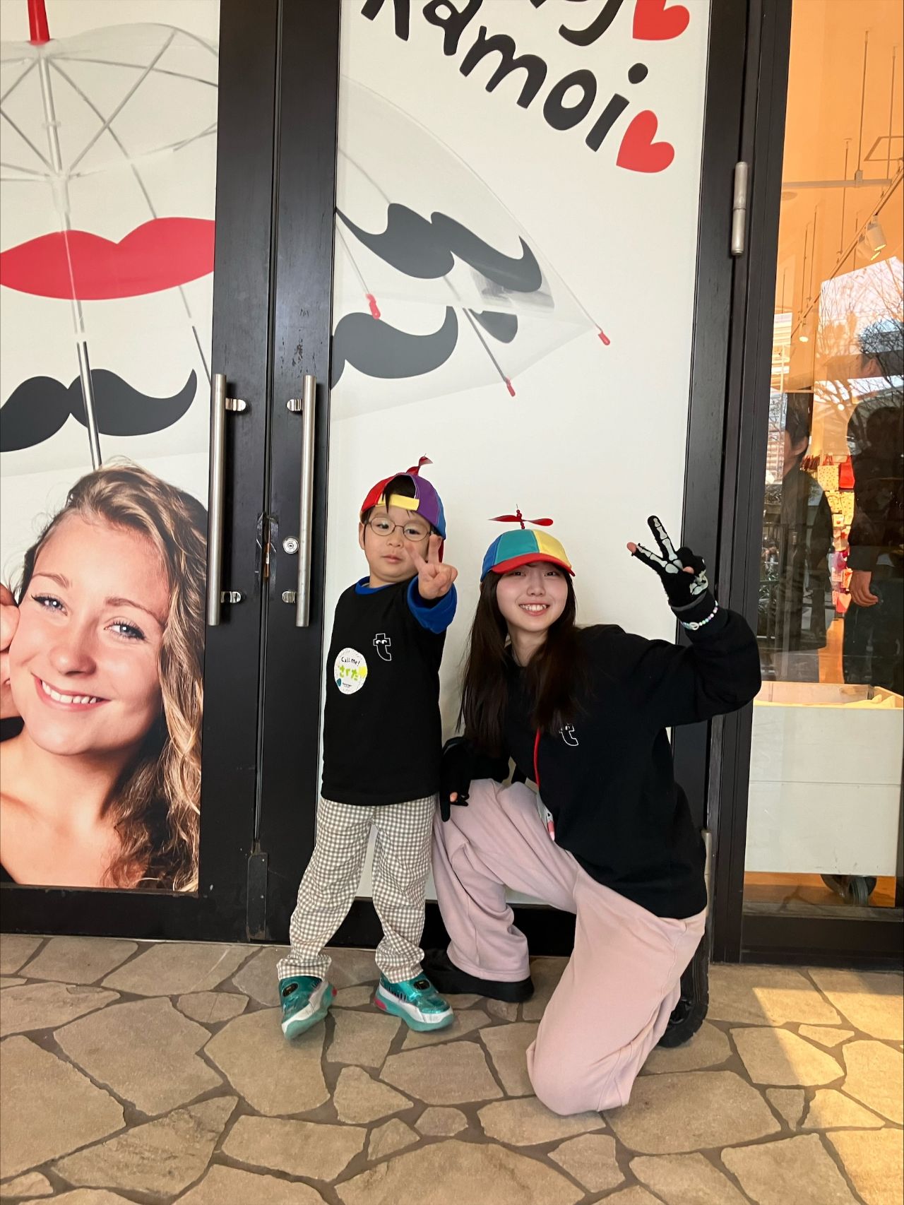 スタッフとおそろいのプロペラのキャップで仮装もバッチリです ( ^^)b