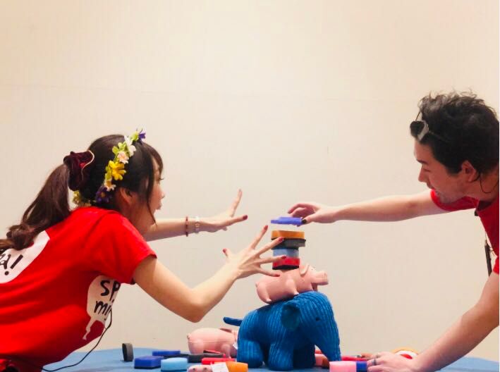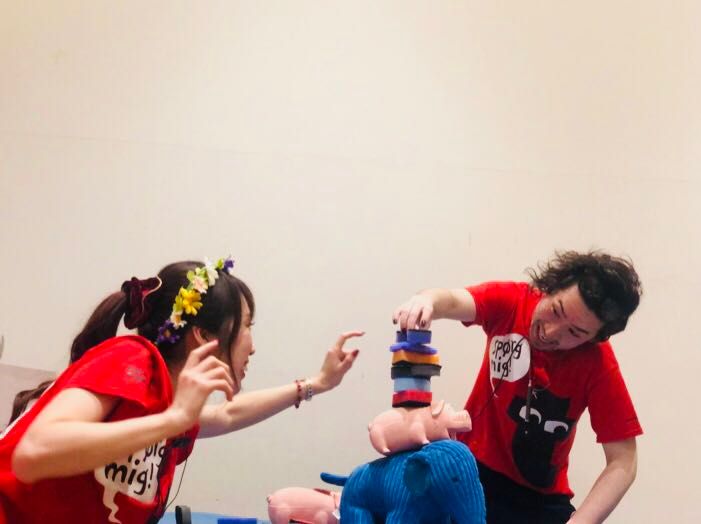 今回はあえて、スポンジをカットしたり、アニマルフィギュアを混ぜてみたり・・・わざとグラグラするアイテムをご用意致しました!!笑