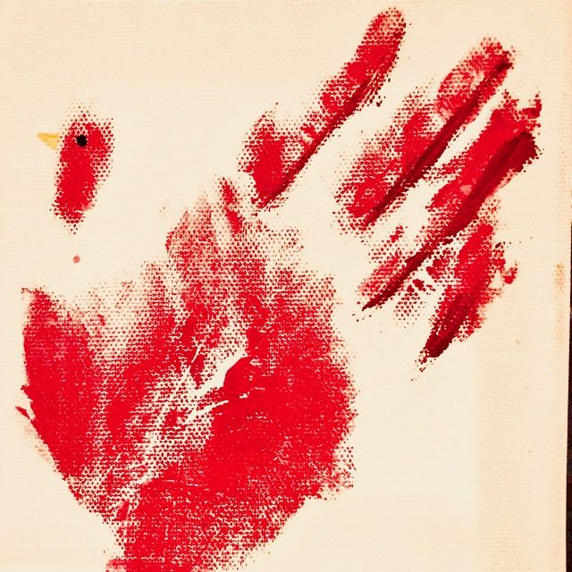 手形を絵の具でとって、その形を色んな動物に見立てて
