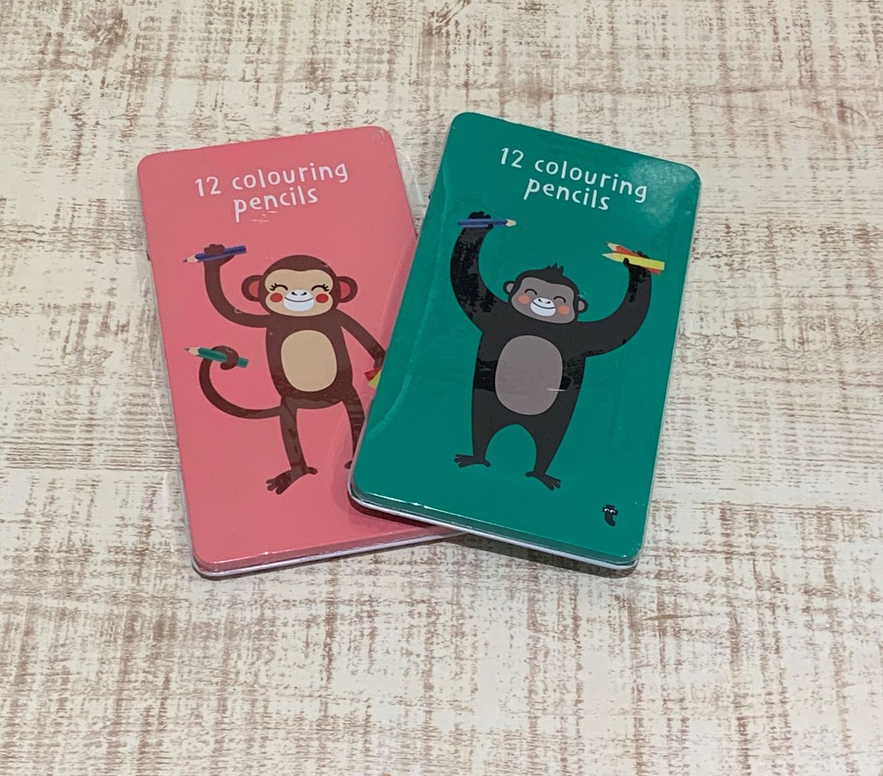 ゴリラと猿のデザインが描かれた色鉛筆