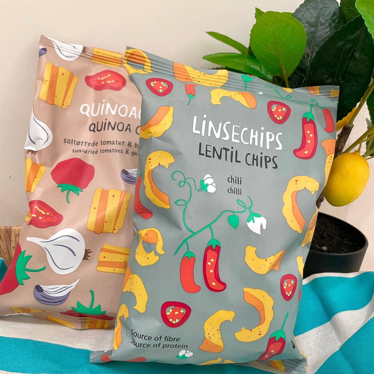 (左)キヌアチップス(トマト&ガーリック) ¥350(税込¥378)
