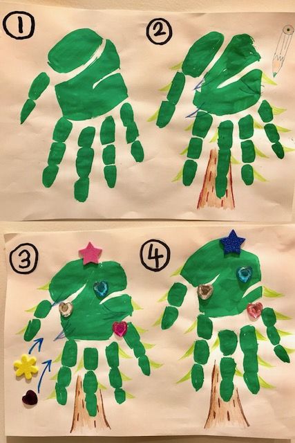 ②その手形をツリーやトナカイなどのクリスマスモチーフに見立てて、ご同伴の方に加筆していただきます