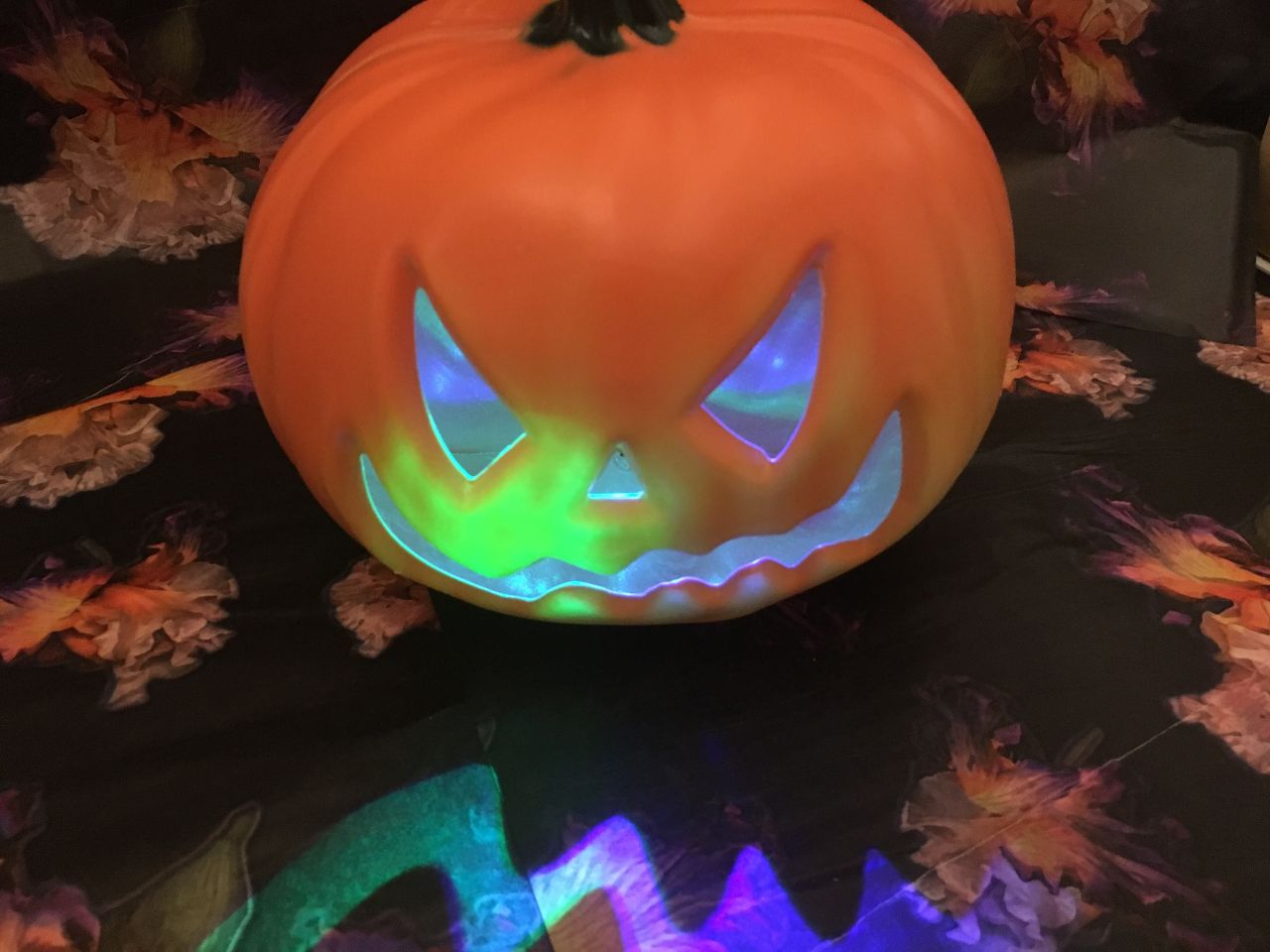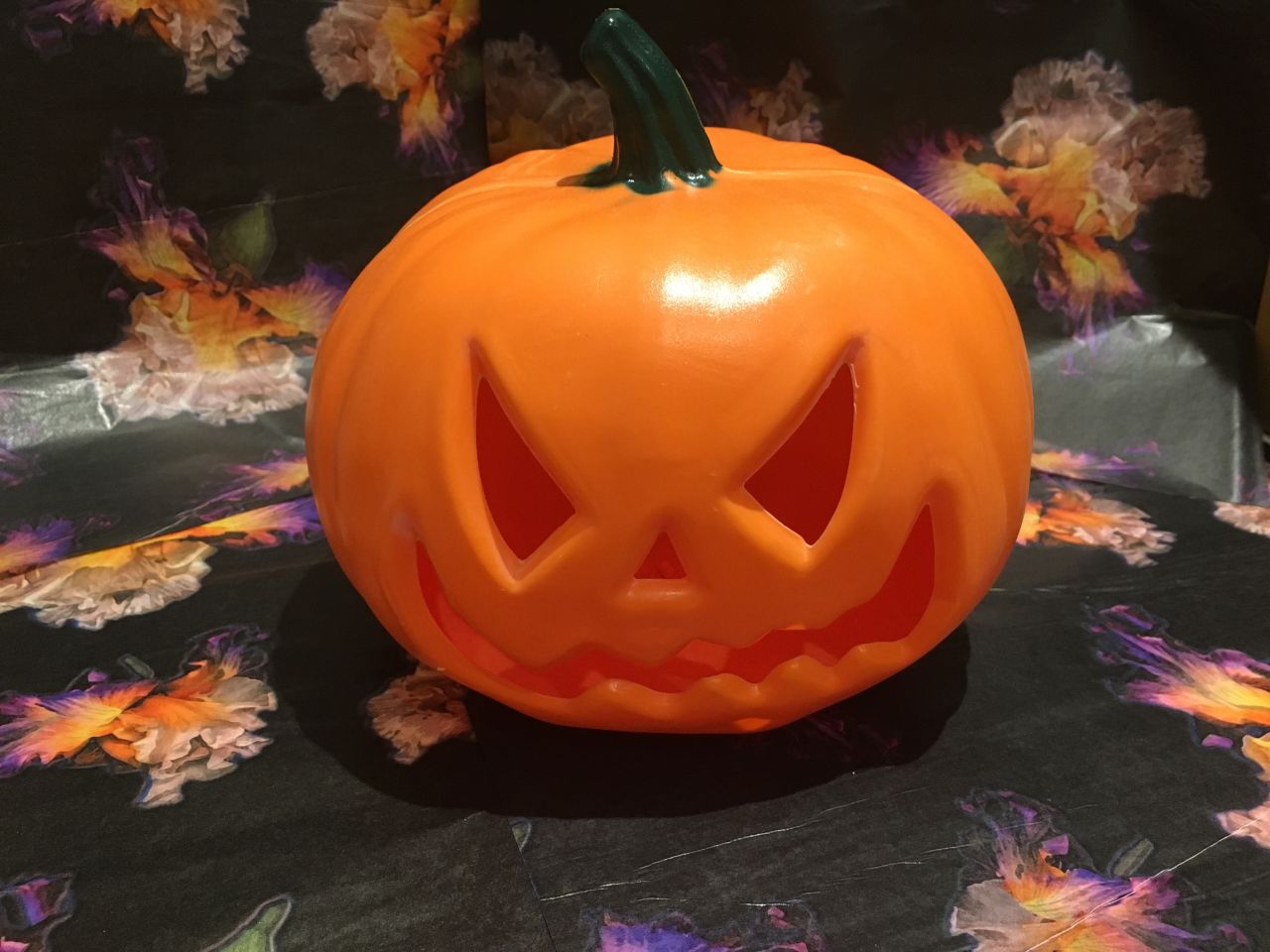 本物のカボチャをくりぬいて作るライトも有名ですが、こちらの商品は置くだけでハロウィンの雰囲気を