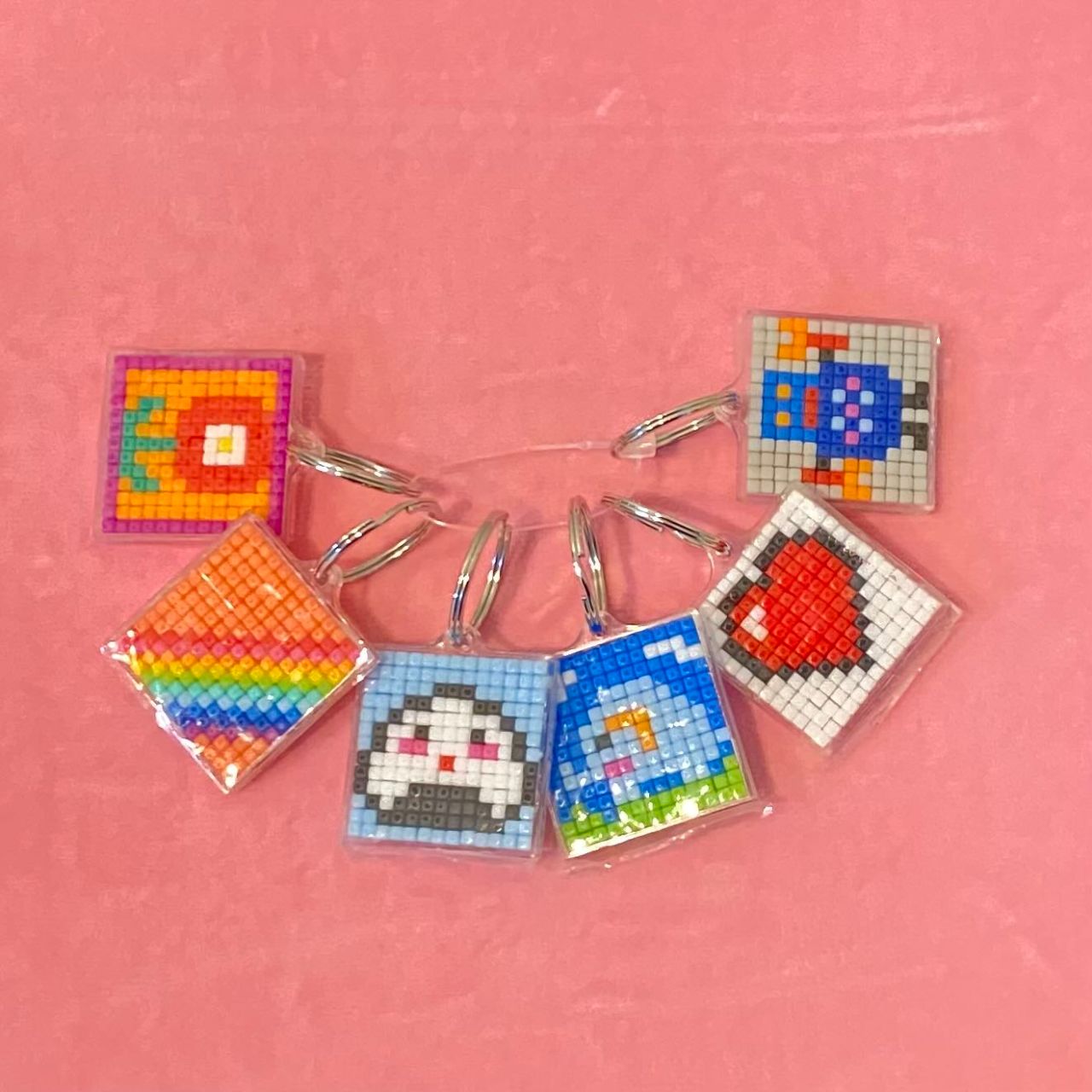 このキーリングは、ピクセル風のデザインを自分好みにDIYできるんです!