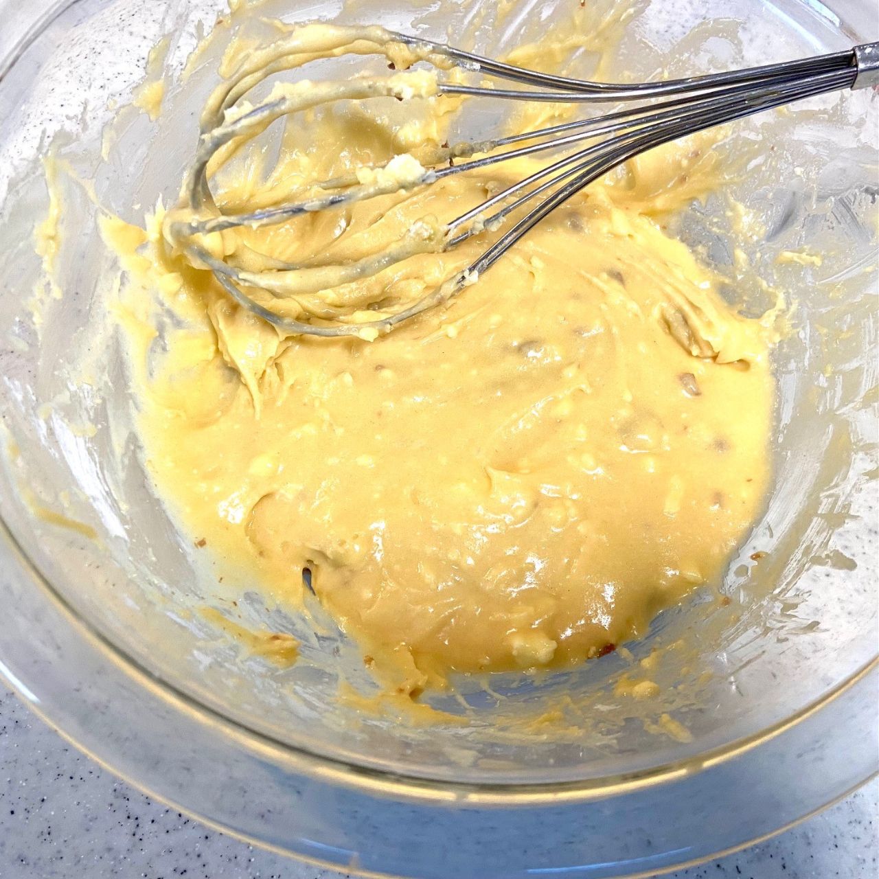 混ぜて、生地を30分ほど冷蔵庫で寝かせます。