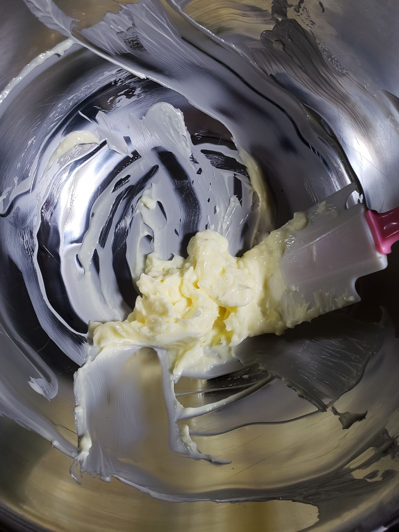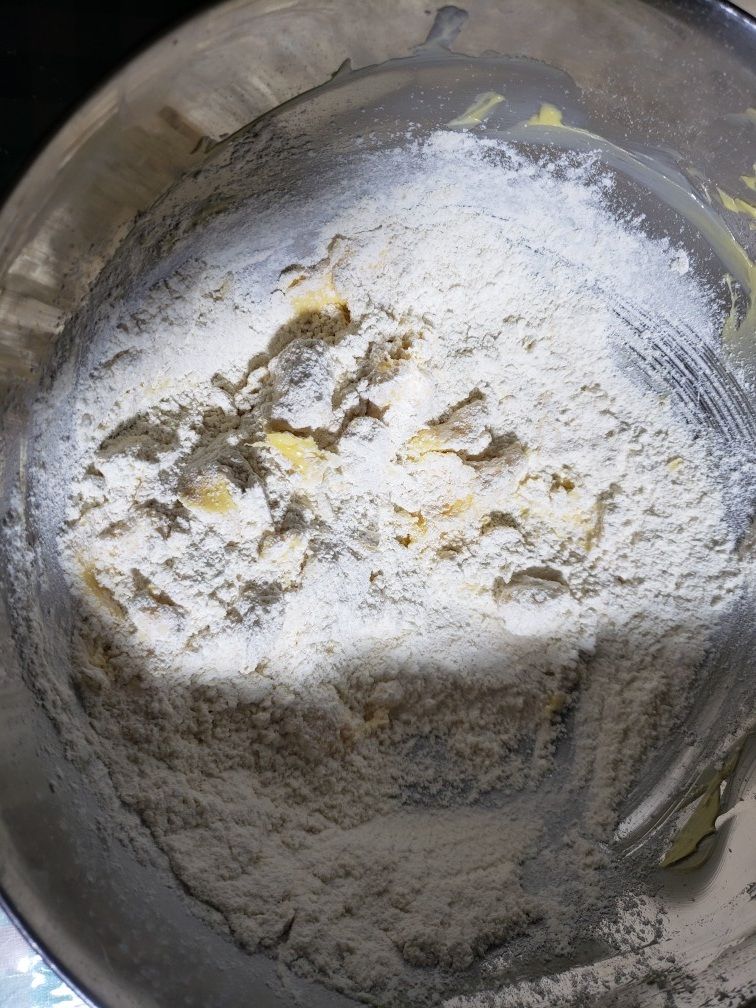 ②そこに卵黄、クッキーミックスを入れそぼろ状になるまで混ぜます