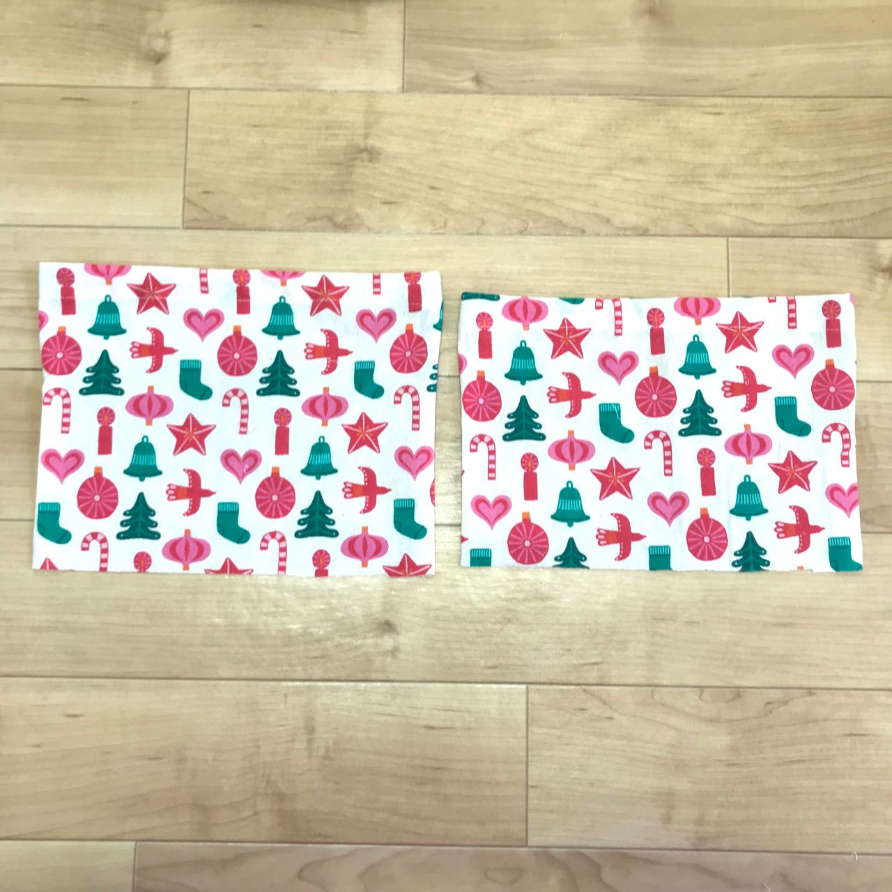 「クリスマスらしい柄も可愛いし、これだけ大きいと色々作れそう!」とスタッフのDIY魂に火がつきました!(笑)