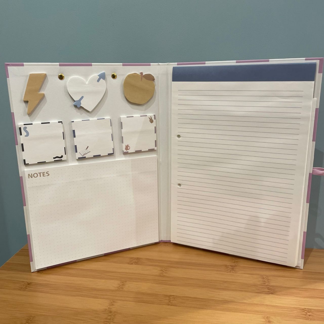 こちらのクリップボードは中に付箋とメモパッドが