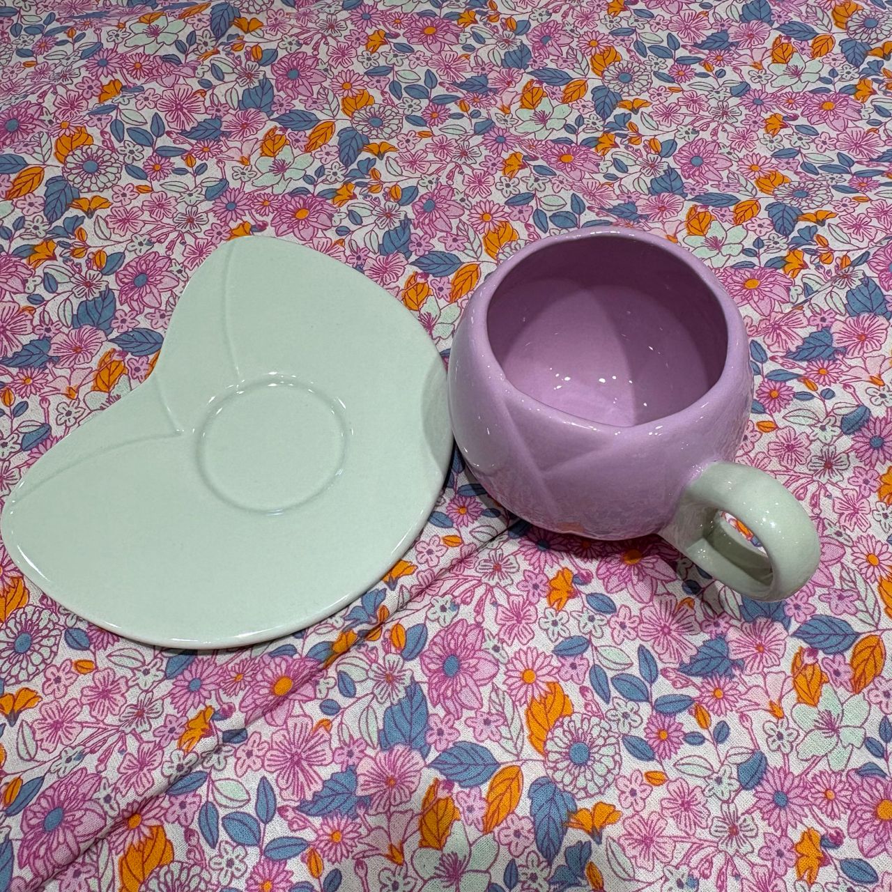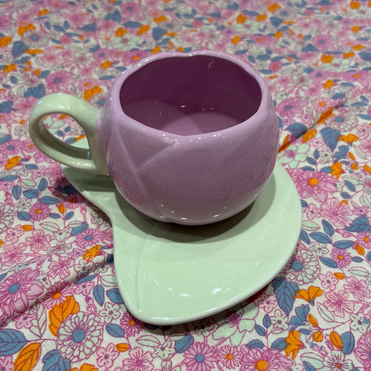 お花の形のマグカップに葉っぱの形のソーサーです!!