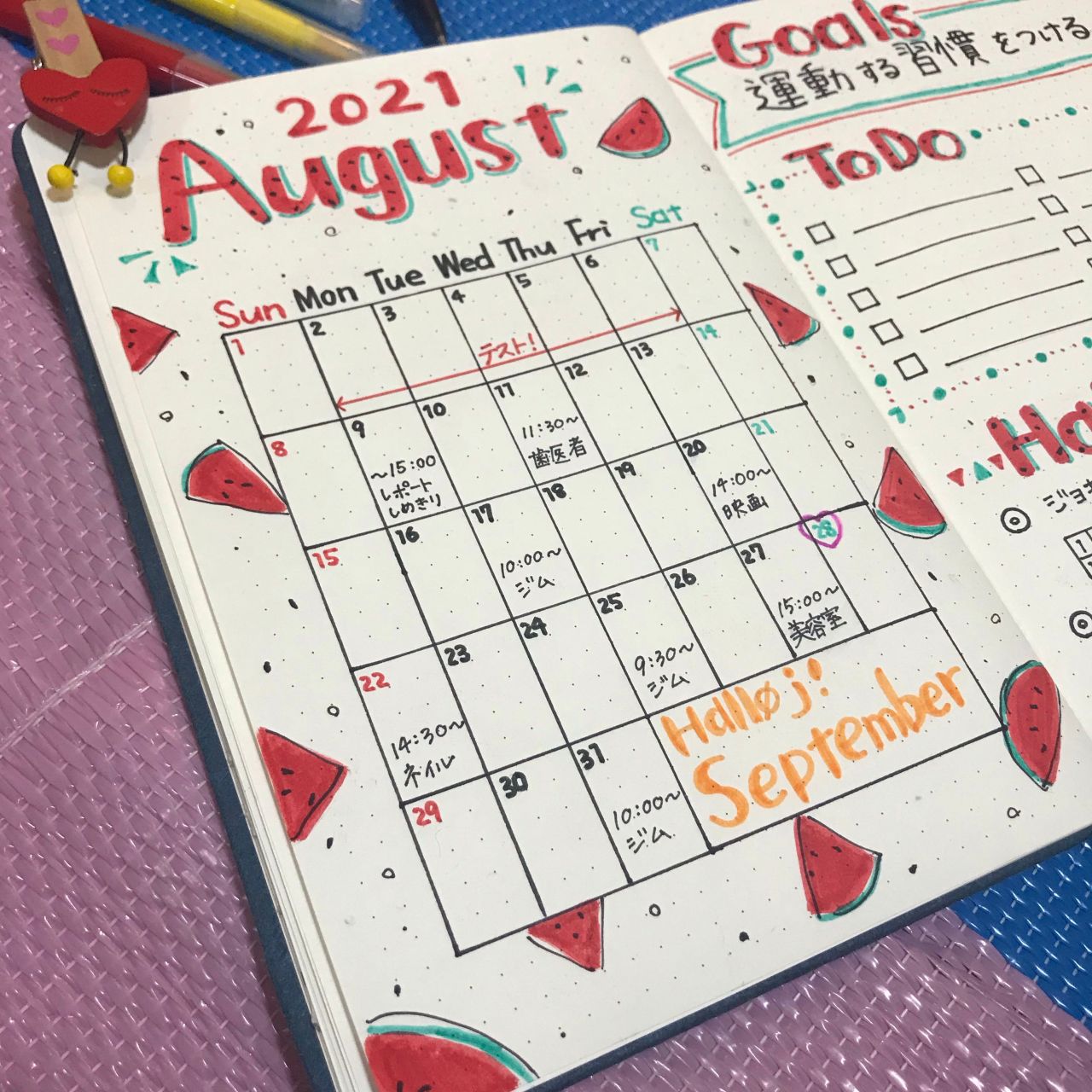 右ページには、月の目標とTo Doリスト、ハビット(習慣)トラッカーを書きました。ハビットトラッカーでは、目標を達成した日に色を塗っていくことでモチベーションを高めることができます!