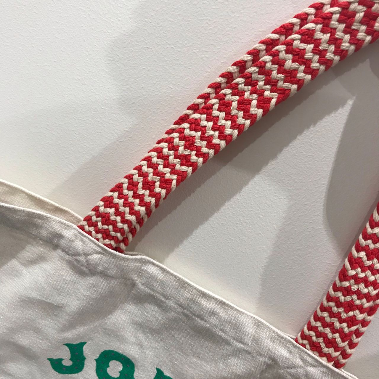 持ち手の赤と白がアクセントになっていて、キュートなトートバッグです♡