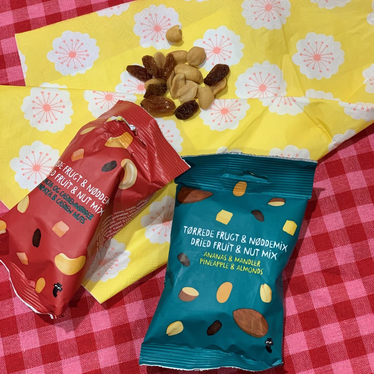 緑のものはピーナッツ、レーズン、アーモンド、パイナップル