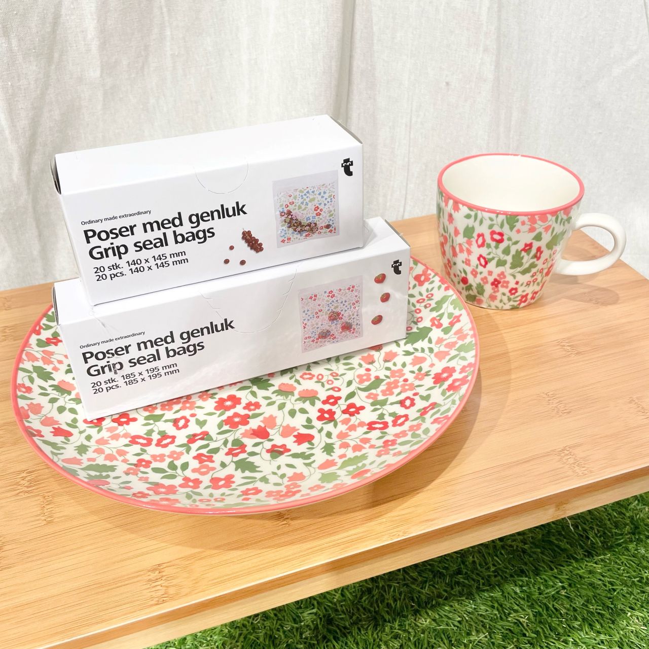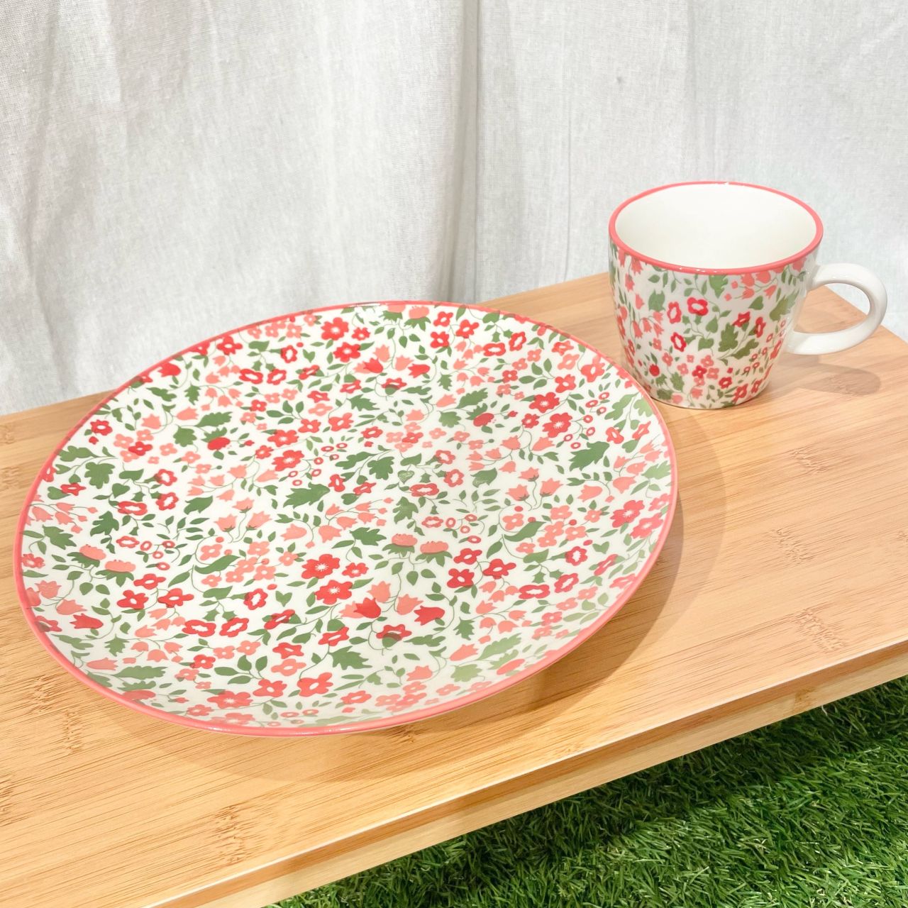 花柄のプレートとマグです。