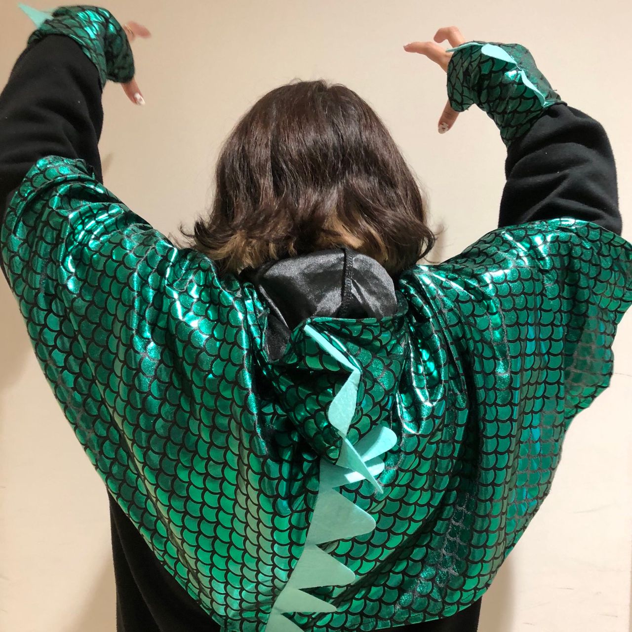こちらの仮装、腕を閉じているとマントみたいですが