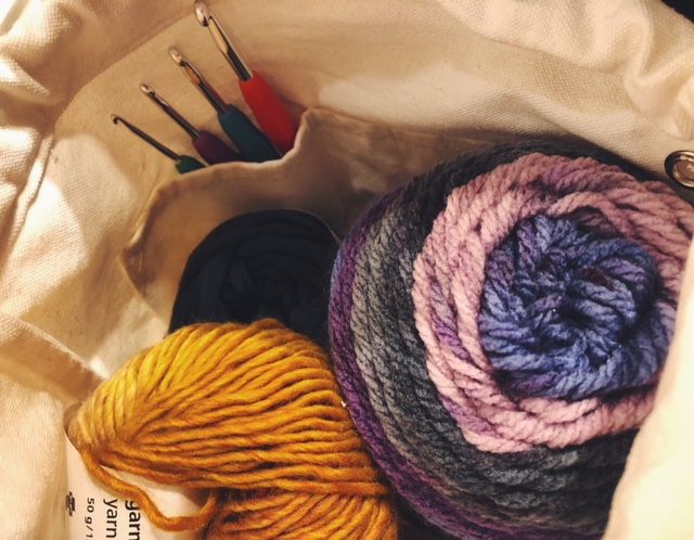 こんな風にバッグの中に毛糸をいくつか入れて頂き
