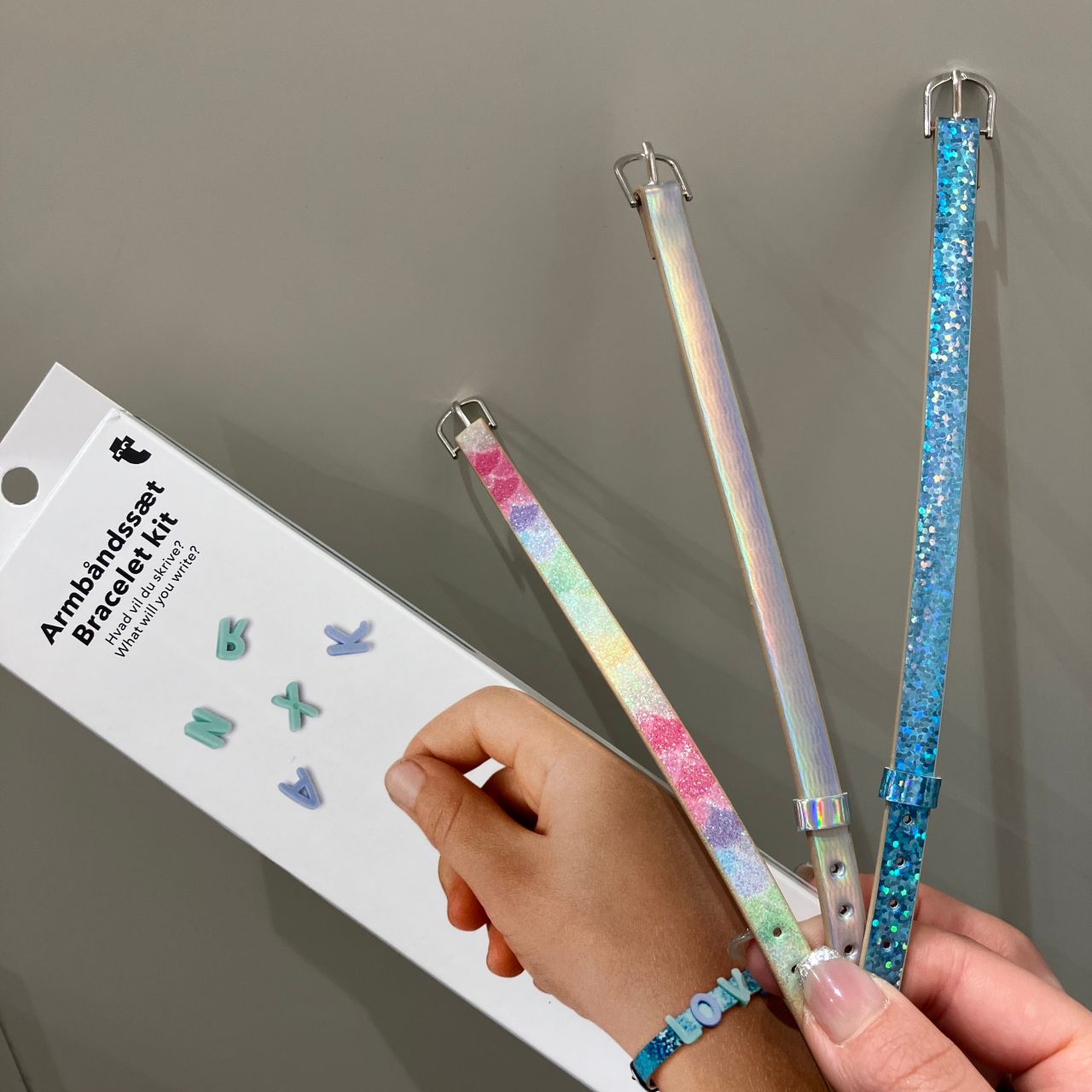 付属のアルファベット(A~Z)のパーツを使ってオリジナルのブレスレットを作成します♪(/・ω・)/