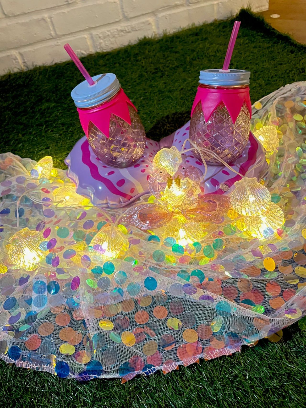 フラミンゴの形とラメのキラキラが絶妙にかわいいパーティーグラス!!