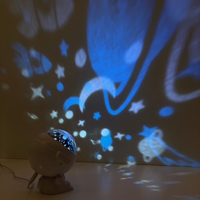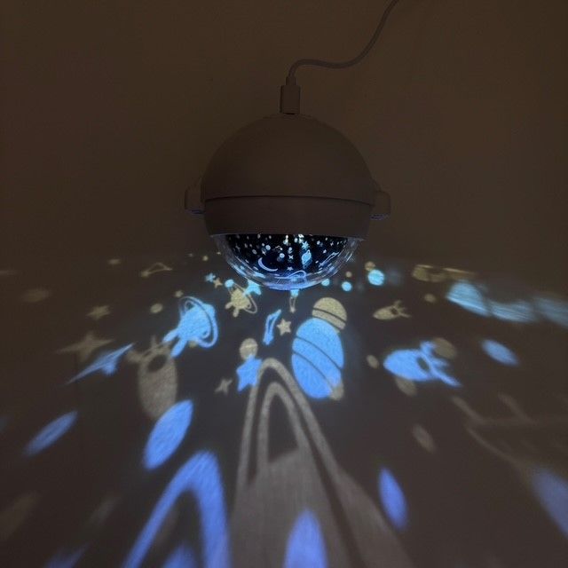 ライトを壁に当てると、そこにはたくさんの惑星や星が!!!