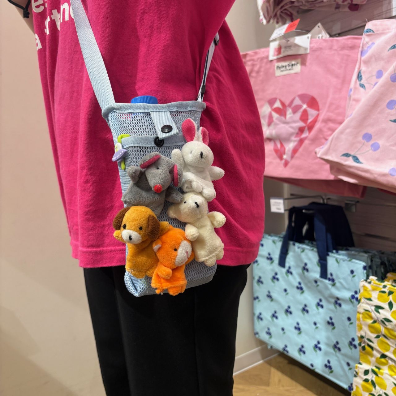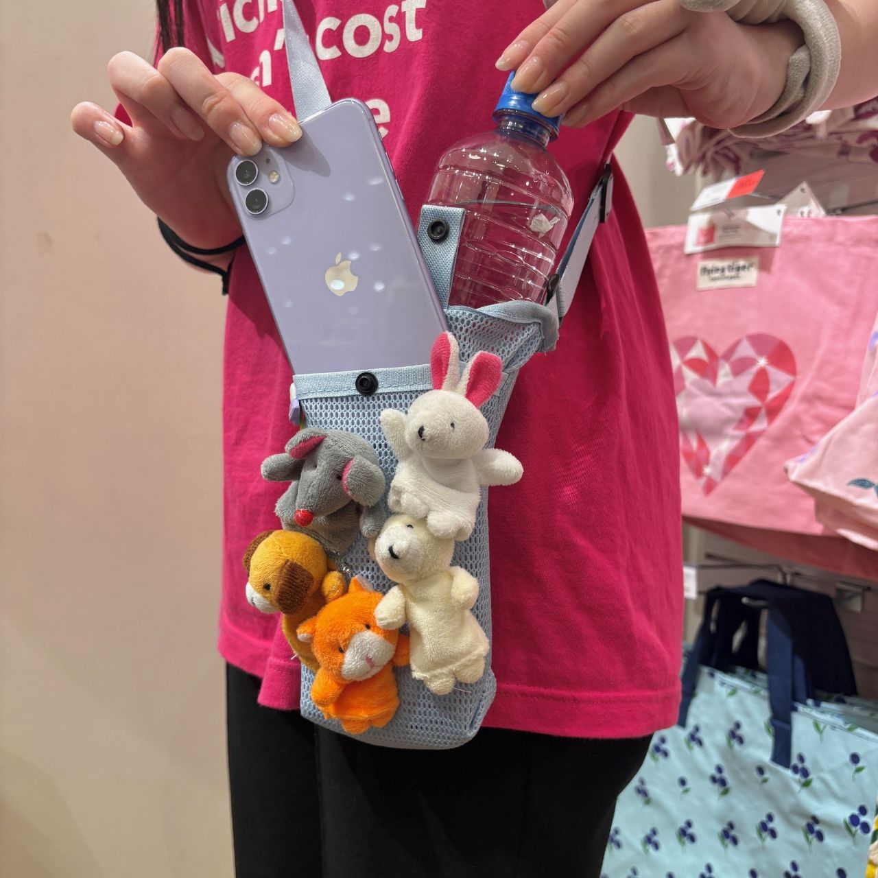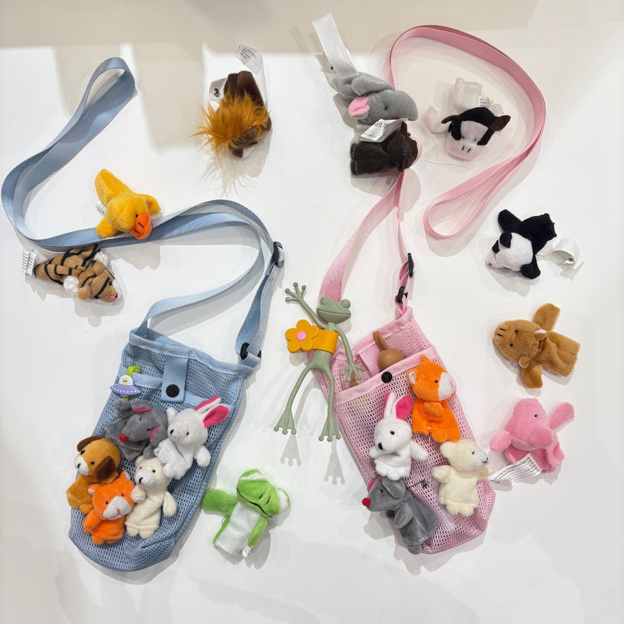 バッグの周りにいる指人形たちはフライングタイガーの定番商品!