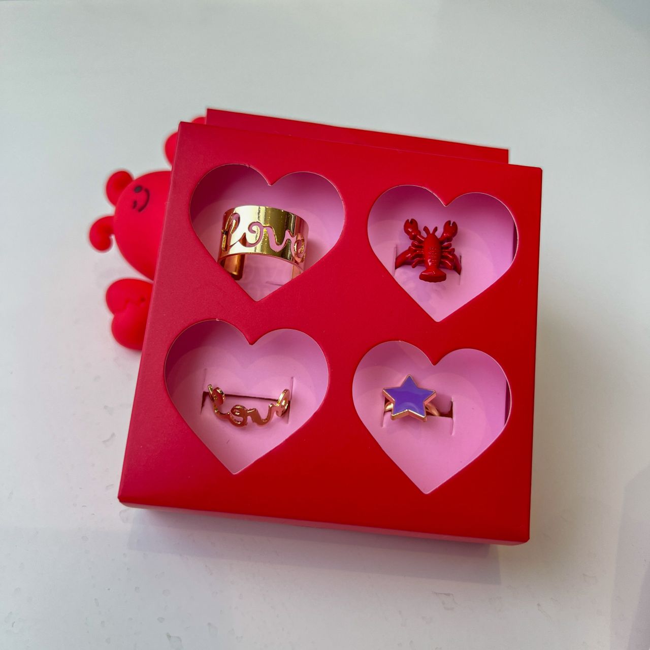 メタリックなロブスターと♡の柄がユニークでかわいい~><