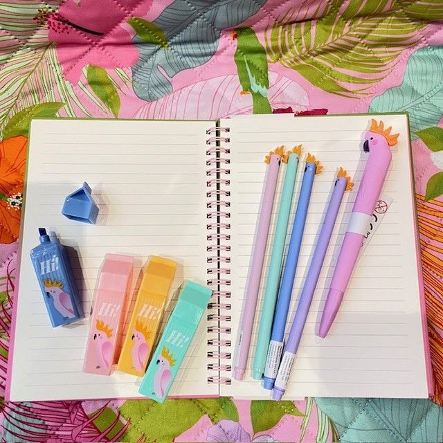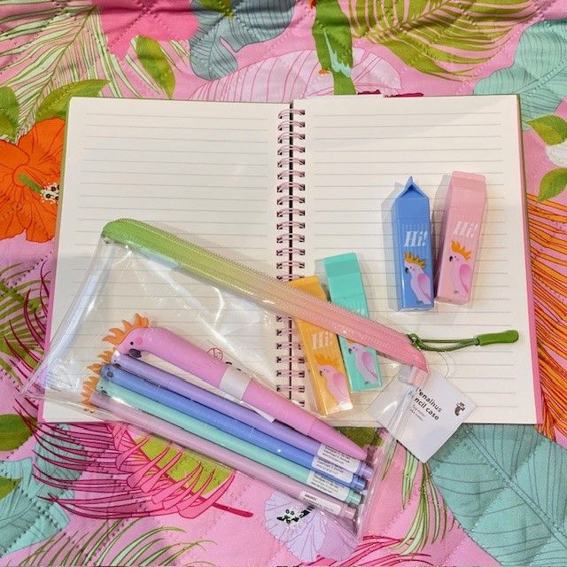 集めた鳥さん文房具をクリアペンケースに
