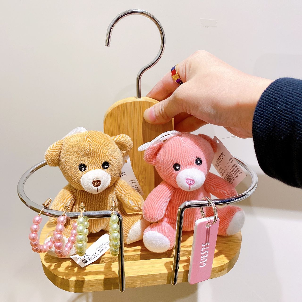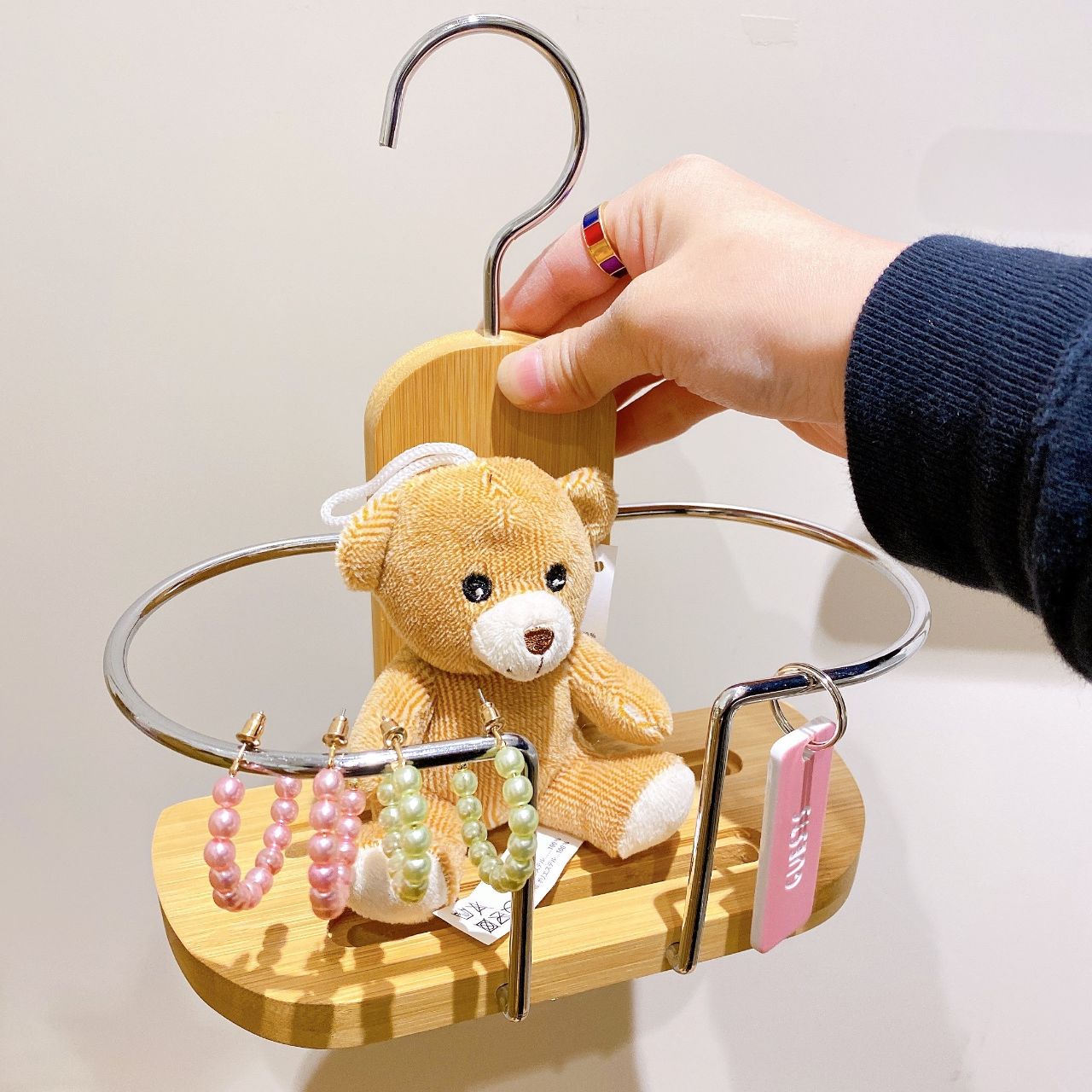 シルバーのラック部分にキーホルダーやアクセサリーをぶらさげたり、