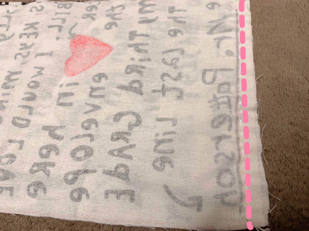 2枚を裏にして重ねて角をカットしていない方を縫い代1cmあけて縫い合わせます。