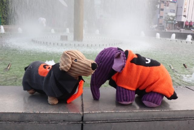 可愛いぬいぐるみと一緒に、ハロウィンの街に繰り出して、